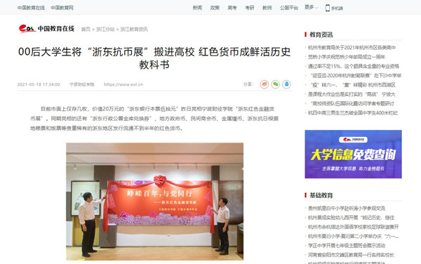 【中国教育在线】宁财院大学生举办“浙东抗币展” 让红色货币成鲜活历史教科书