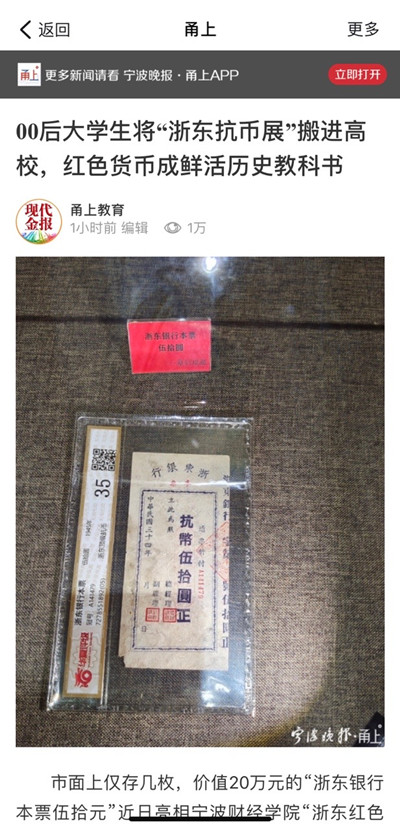 【宁波晚报甬上客户端】宁财院00后大学生将“浙东抗币展”搬进高校