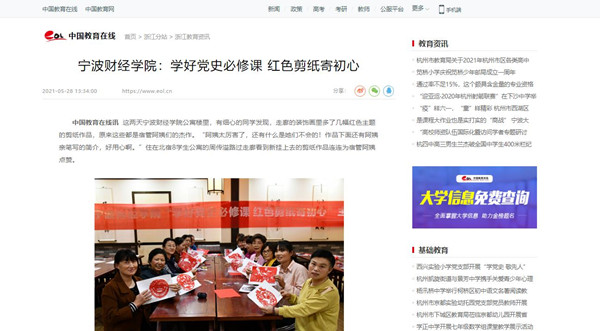 【中国教育在线】宁波财经学院:学好党史必修课 红色剪纸寄初心