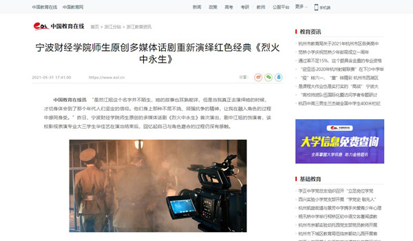 【中国教育在线】宁波财经学院师生原创多媒体话剧重新演绎红色经典《烈火中永生》