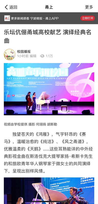 【宁波晚报甬上客户端】乐坛伉俪宁财院献艺 演绎经典名曲