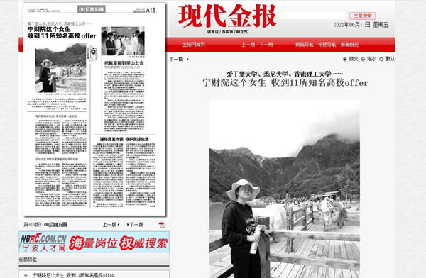 【现代金报】宁财院这个女生 收到11所知名高校offer