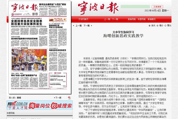 【宁波日报】宁波财经学院创新思政实践教学