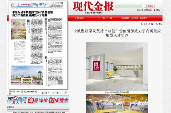 【现代金报】宁波财经学院坚持“双创”价值引领致力于高质量应用型人才培养