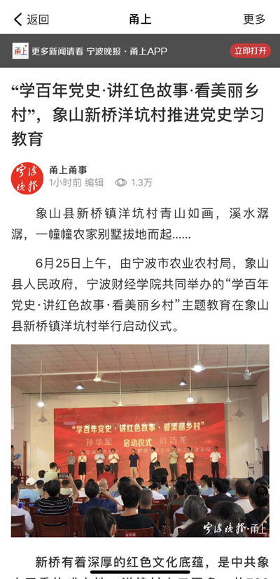 【宁波晚报甬上客户端】宁波财经学院携手象山新桥洋坑村推进党史学习教育