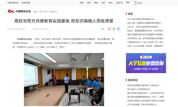 【中国教育在线】宁财院与警方共建教育实践基地 将反诈骗融入思政课堂