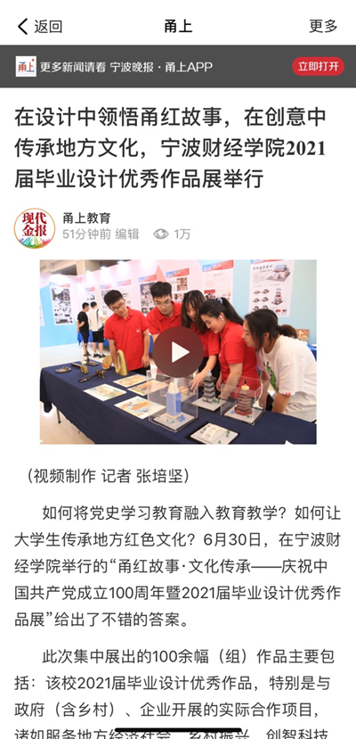 【宁波晚报甬上客户端】在设计中领悟甬红故事,宁波财经学院2021届毕业设计优秀作品展举行