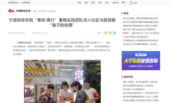 【中国教育在线】宁波财经学院“青知·青行”实践团队深入社区宣讲反诈反邪