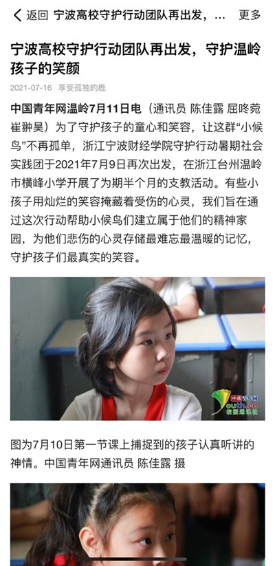 【中青校园】宁波财经学院守护行动团队再出发,守护温岭孩子的笑颜