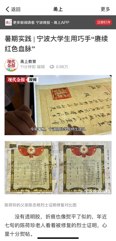 【宁波晚报甬上客户端】暑期实践 | 宁波财经学院大学生用巧手“赓续红色血脉”