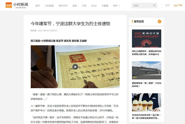 【钱江晚报】今年建军节,宁波财院这群大学生为烈士修遗物