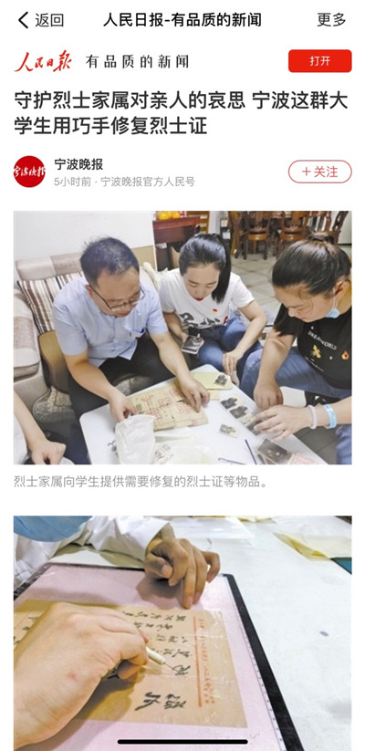 【人民日报客户端】宁财院大学生守护烈士家属对亲人的哀思