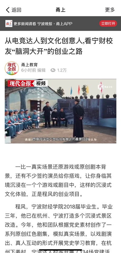 【宁波晚报甬上客户端】从电竞达人到文化创意人 宁财校友“脑洞大开”的创业之路