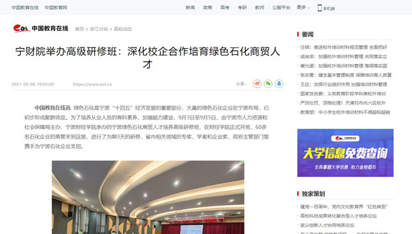 【中国教育在线】宁财院举办高级研修班:深化校企合作培育绿色石化商贸人才