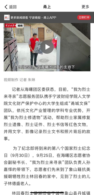 【宁波晚报甬上客户端】修复烈士遗像、证件和书信……宁波财经学院团队在行动!