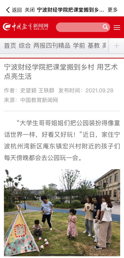【中国教育新闻网】宁波财经学院把课堂搬到乡村 用艺术点亮生活