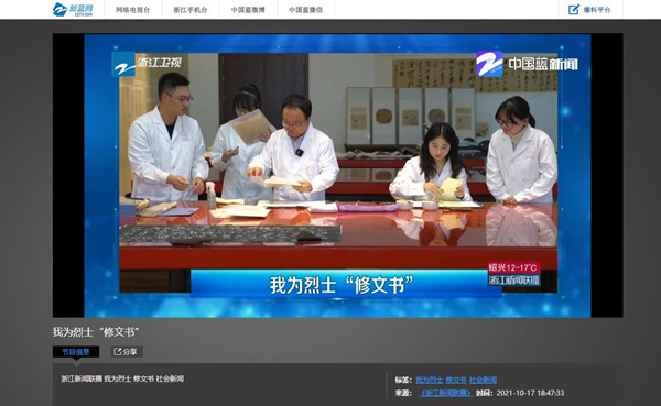 【浙江卫视·浙江新闻联播】宁波财经学院学子为烈士“修文书”
