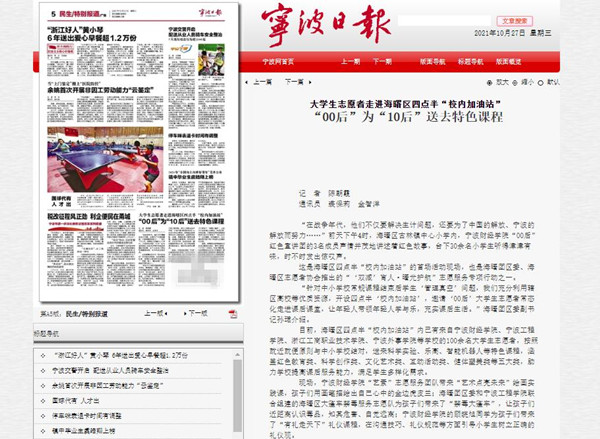 【宁波日报】宁波财经学院大学生志愿者为“10后”送去特色课程