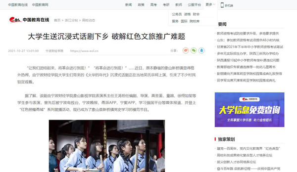 【中国教育在线】宁财院大学生送沉浸式话剧下乡 破解红色文旅推广难题