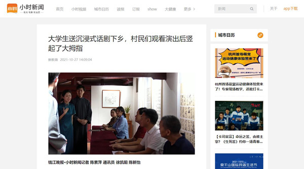 【钱江晚报】宁波财经学院大学生送沉浸式话剧下乡,村民们观看演出后竖起了大拇指
