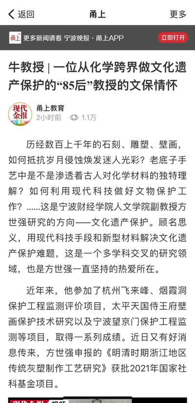 【宁波晚报甬上客户端】宁财院“85后”教授的文保情怀