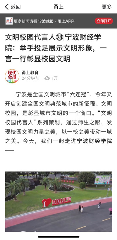 【宁波晚报甬上客户端】宁波财经学院:举手投足展示文明形象,一言一行彰显校园文明