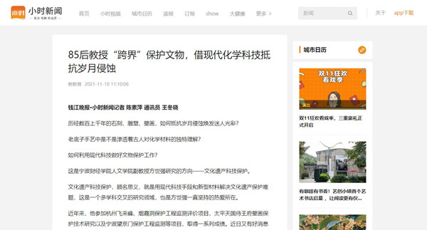【钱江晚报】宁财院85后教授“跨界”保护文物,借现代化学科技抵抗岁月侵蚀