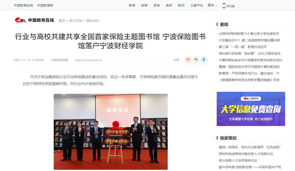 【中国教育在线】宁波保险图书馆落户宁波财经学院