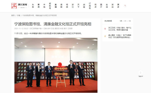 【浙江新闻】宁波保险图书馆、清廉金融文化馆在宁波财经学院正式开馆亮相