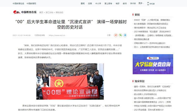 【中国教育在线】宁波财经学院“00”后大学生在革命遗址里“沉浸式宣讲”