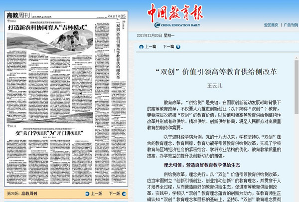 【中国教育报】宁波财经学院:“双创”价值引领高等教育供给侧改革