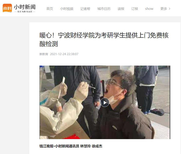 【钱江晚报小时新闻客户端】暖心!宁波财经学院为考研学生提供上门免费核酸检测