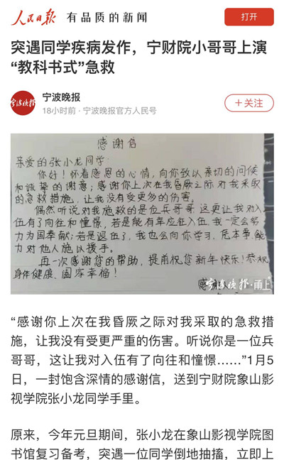 【人民日报客户端】突遇同学疾病发作,宁财院小哥哥上演“教科书式”急救
