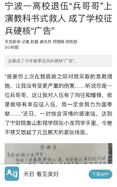 【天目新闻】宁波财经学院:退伍“兵哥哥”上演教科书式救人 成了学校征兵硬核“广告”