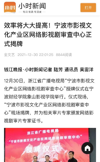 【钱江晚报·小时新闻客户端】宁波市影视文化产业区网络影视剧审查中心在宁财院揭牌