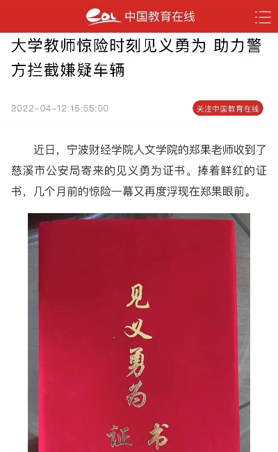 【中国教育在线】宁财院教师惊险时刻见义勇为 助力警方拦截嫌疑车辆
