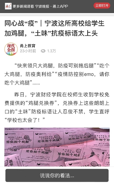 【宁波晚报·甬上客户端】同心战“疫”|宁财院给学生加鸡腿,“土味”抗疫标语太上头