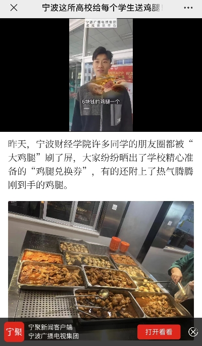 【宁聚新闻客户端】宁财院给每个学生送鸡腿!