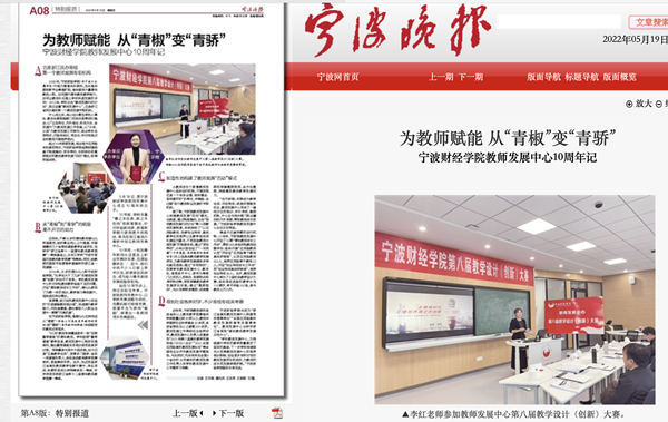 【宁波晚报】为教师赋能 从“青椒”变“青骄”宁波财经学院教师发展中心10周年记