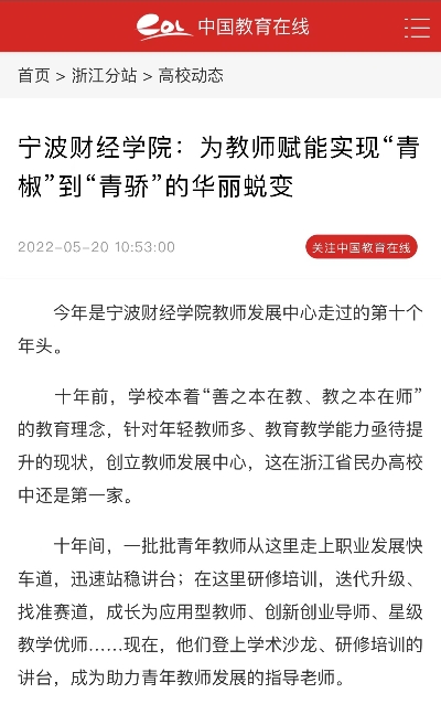 【中国教育在线】宁波财经学院:为教师赋能实现“青椒”到“青骄”的华丽蜕变