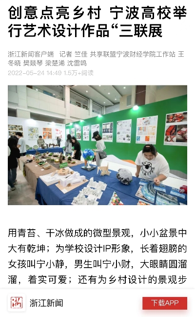 【浙江新闻客户端】创意点亮乡村 宁波财经学院举行艺术设计作品“三联展”
