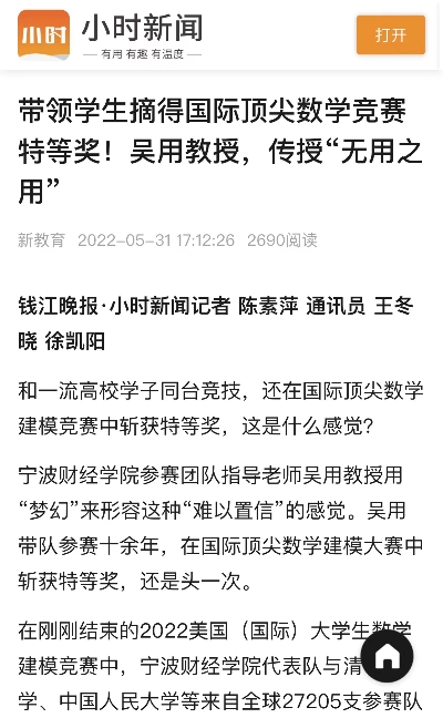 【钱江晚报·小时新闻客户端】带领学生摘得国际顶尖数学竞赛特等奖!宁波财经学院吴用教授,传授“无用之用”