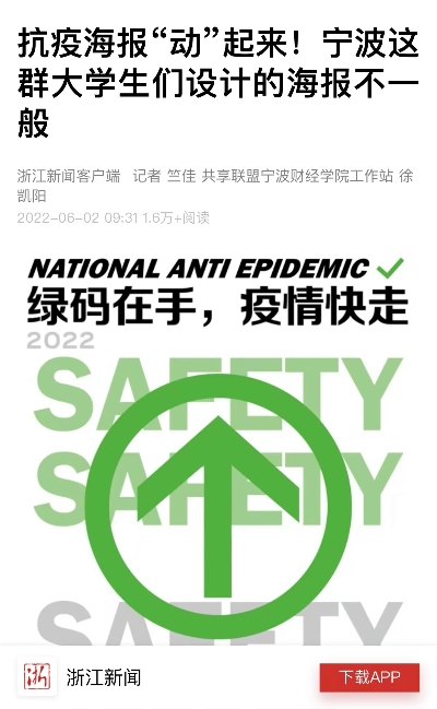 【浙江新闻客户端】抗疫海报“动”起来!宁财院这群大学生们设计的海报不一般