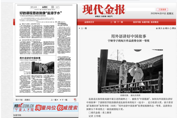 【现代金报】用外语讲好中国故事 宁财学子的短片作品获得全国一等奖