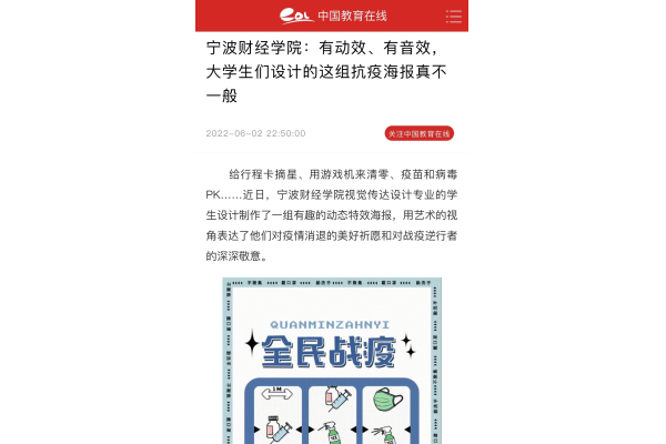 【中国教育在线】宁波财经学院:有动效、有音效,大学生们设计的这组抗疫海报真不一般