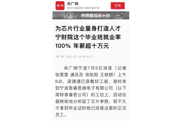 【央广网】为芯片行业量身打造人才 宁财院这个毕业班就业率100% 年薪超十万元