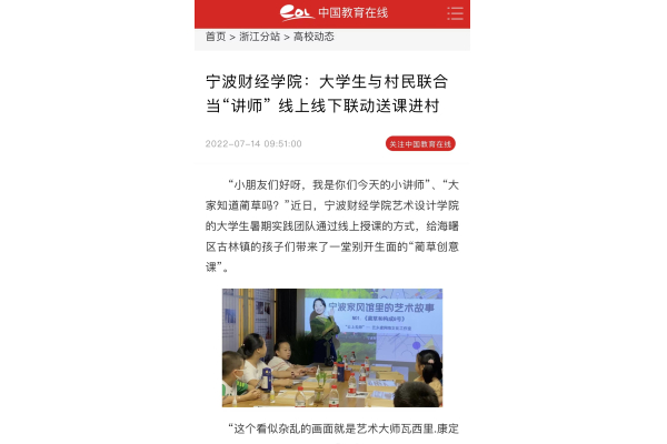 【中国教育在线】宁波财经学院:大学生与村民联合当“讲师” 线上线下联动送课进村