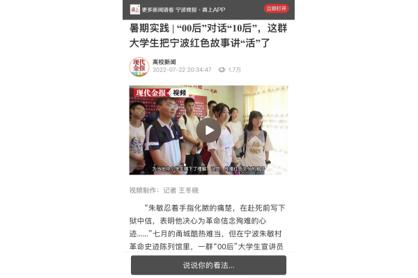 【宁波晚报·甬上客户端】“00后” 对话“10后”, 宁波财经学院大学生把宁波红色故事讲“活”了