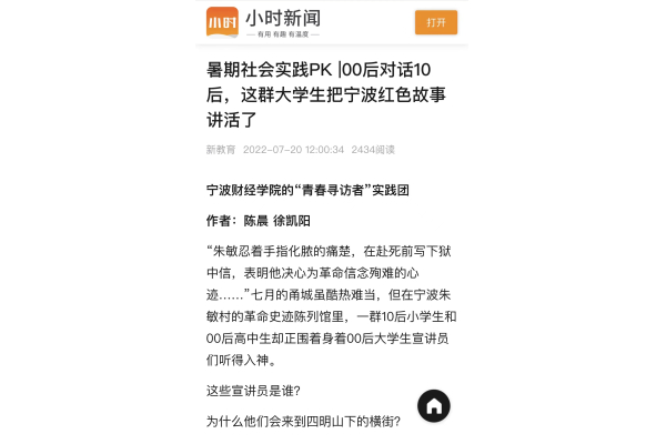 【钱江晚报·小时新闻客户端】00后对话10后,宁财院大学生把宁波红色故事讲活了