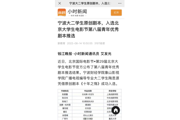 【钱江晚报·小时新闻客户端】宁财院大二学生原创剧本,入选北京大学生电影节第八届青年优秀剧本推选